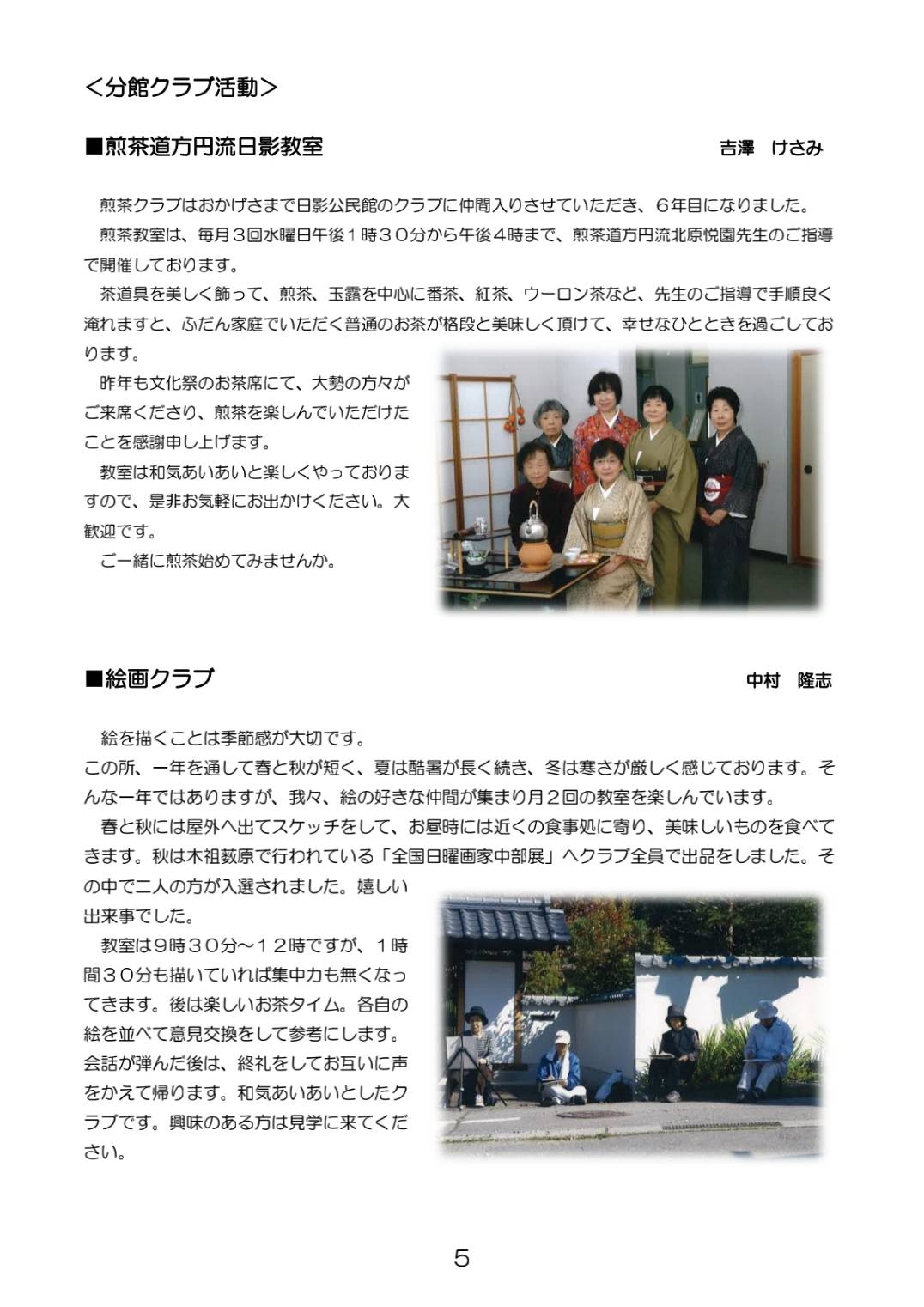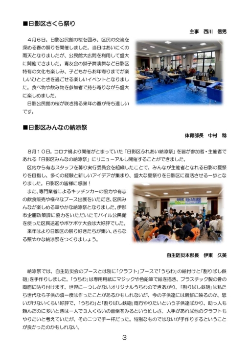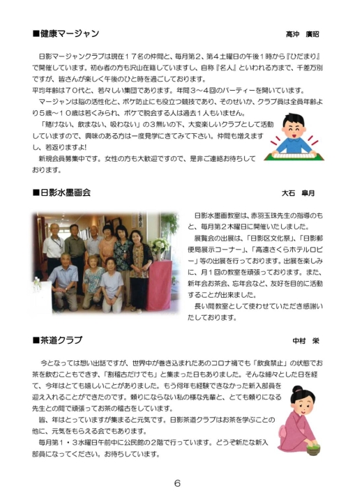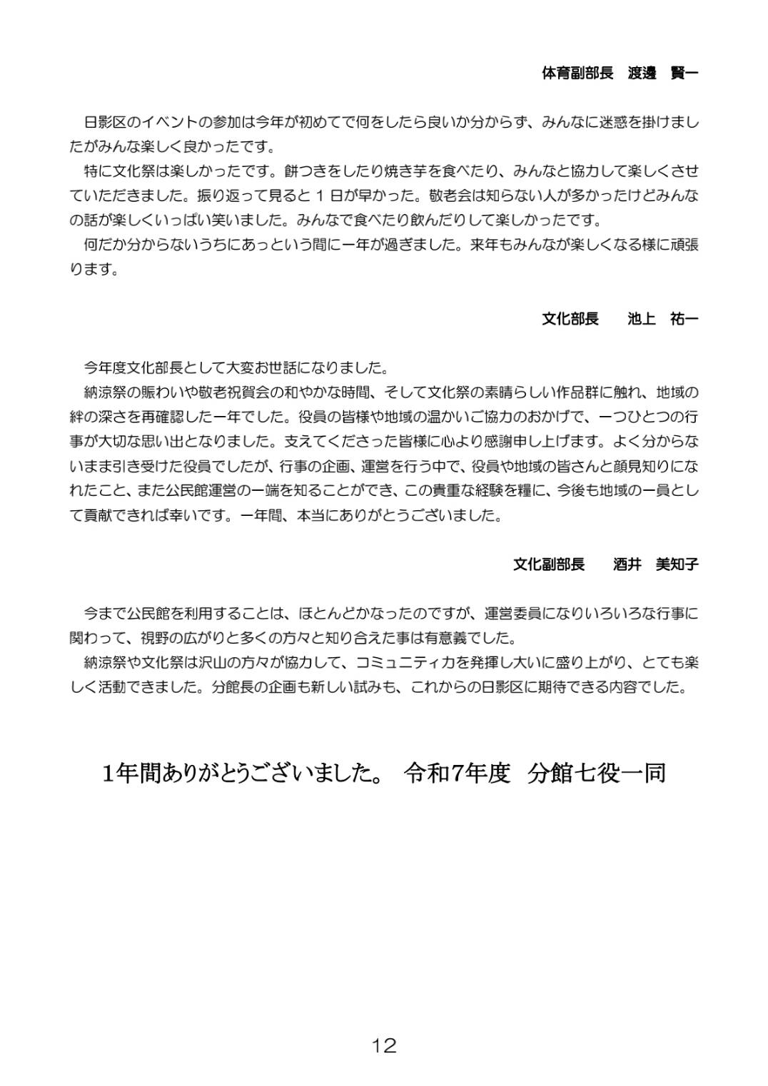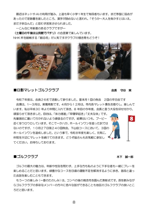公民館通信 50号 令和7年度公民館活動をまとめた、日影区公民館通信を発行しました。賛否両論ではありますが、久々に納涼祭が開催されました。その他、クラブ活動については新クラブもく加わるなどして1年間締めくくりました。ご興味のある方は、是非1度覗いて見て頂けたらと思います。